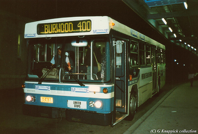 400 | 2787 at 6.00am on 17/7/89 and the very first Limited Stops route 400 is about to depart Bondi Junction for Burwood. (MkIV 2797 was the first to operate Burwood to Bondi Junction). | Graeme Knappick |