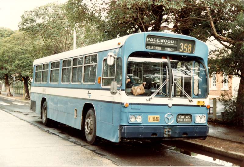 358 | 1840 waits for time at the Double Bay 358 terminus back in the unoverhauled/UTA days of 1983. | Graeme Knappick |