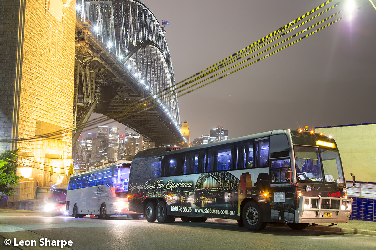 Ex Greyhound (607) loading at Milsons Point for the Amway Conference, January 2017.