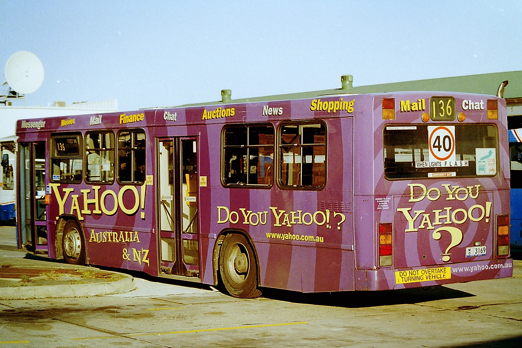 000 | Mercedes Benz O405 3170 in all over advertising for Yahoo - internet provider in 2001. Every time the front door opened, the bus played the Yahoo jingle.... do you Yahoo? Yahoooooo | Anthony Christie |