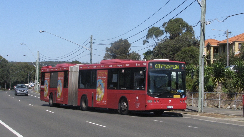 Bus 2236 turns into Anzac Parade before Canara Avenue